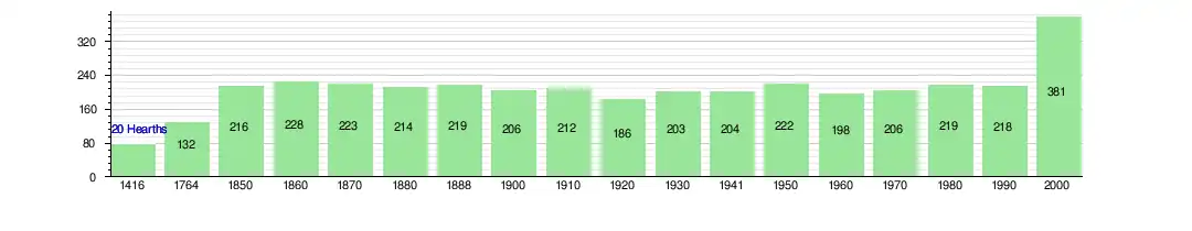 As of 2000, there were 135 private households in the village, and an average of 2.8 persons per household.[7] There were 28 households that consist of only one person and 16 households with five or more people. Out of a total of 135 households that answered this question, 20.7% were households made up of just one person and there were 2 adults who lived with their parents. Of the rest of the households, there are 36 married couples without children, 66 married couples with children There were 3 single parents with a child or children.[8]