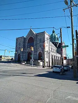 Saint Anne Church, formally the Shrine of Saint Anne for Mothers, is a Roman Catholic church located in the South End neighborhood of Waterbury, Connecticut, part of All Saints Parish (Spanish: Todos Los Santos). Saint Anne Parish was founded in 1886 to serve city's the French-Catholic population. For nearly 100 years, two 100 foot steeples served as a prominent Waterbury landmark; however, due to ongoing structural problems, the spires were carefully removed in 2019 and stored for possible reconstruction.