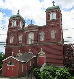 The French Catholic community of Waterbury first met at the old Universalist Trinity chapel on Grand Street.[1] In April 1886 Bishop Lawrence S. McMahon, appointed Father Joseph W. Fones of Watertown to organize a parish. About two weeks later Father Fones first celebrated Mass at the Grand Street hall for the French congregation. Mostly French Canadian immigrants from Quebec, they chose St. Anne as the patroness of the parish.[2] The parish's first church was built in 1888–1889 on Dover Street and dedicated on January 27, 1889.