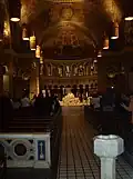 The church was built in a Byzantine style reminiscent of the church of Hagia Sophia in Istanbul.[2][3][4] The decoration of the half-dome behind the high altar is a copy of the twelfth- or thirteenth-century mosaic in the apse of the Basilica of San Clemente al Laterano in Rome. The ground to begin building the church was broken on March 19, 1917.[5]
