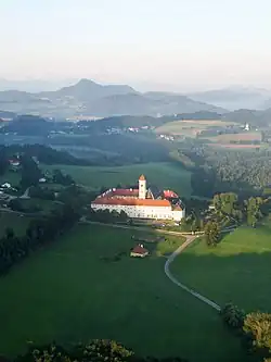 1783 the monastery was dissolved by Emperor Joseph II. In 1788 it was put up for auction. Maximilian Thaddäus von Egger bought it for 163,100 gulden and made the monastery complex the new seat of the Count of Egger.[3] The castle was opened to tourists around the end of the 18th century. In 1934 it was sold to the Missionary Order of Mariannhill. During World War II (1939–45) it served for a while as the seminary of Gurk, then was converted into a military hospital in 1943. The Marianhiller's took the building back in 1948. In 1959 it was purchased by the Diocese of Gurk for use as an Episcopal educational establishment.[3]