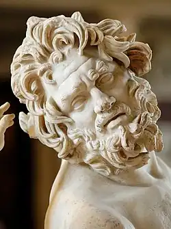 Manipulating a subject's facial expression to depict their inner feelings and personality was a common technique employed by Bernini and other Baroque artists. In 1593, Italian iconographer Cesare Ripa published Iconologia, a book dealing with the idea of physiognomy. Physiognomy was a popular concept throughout the early seventeenth century and was heavily employed by Baroque artists. Longinus's upward glancing eyes and his parted mouth is an example of physiognomy. The expression of his face is meant to symbolize his inner feelings, specifically his spiritual enlightenment.[9] The head is undoubtedly imitated by a Hellenistic model, the Borghese centaur (Louvre). This technique can also be seen in Bernini's Ecstasy of Saint Theresa, where Saint Theresa looks up to the sky with her mouth partly open, similar to what is seen in Saint Longinus.
