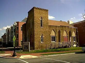The African Union Methodist Protestant Church congregation that became Saint Paul's began as a prayer group in 1900. The church was designed by R.C. Archer, Jr., the second licensed African American architect in Washington. It was his first church commission in the city.[1] The Gothic Revival style building was completed in 1924. Saint Paul's is the only church that survives from a predominantly working-class African-American neighborhood in the Navy Yard area. It is also one of the area's last surviving buildings from the first part of the 20th century. In the 1940s, 700 units of public housing were built in the area. In the early 21st century, mixed-income townhomes have replaced the rest of the historic structures surrounding the church.[1]