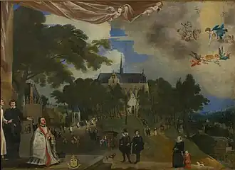 The first mention of Saint Quentin's Church (ecclesia Sancti Quintini de Hovis) dates from 1222. The patronage right rests at that time with the chapter of the St. Peter's Church in Leuven. In 1252 Saint Quentin's Church became an independent parish. In addition to being a parish church, the church was also a busy pilgrimage church where Saint Quentin was worshiped, a tradition that survived until the 20th century.[1] The popular saint Saint Quentin was specifically invoked as protector against a number of diseases, including dropsy, whooping cough and childhood diseases. In particular during the 16th century when there were many pest epidemics, the church was an important place of pilgrimage.[2] Every year, two great pilgrimages accompanied by a solemn procession took place.[1]