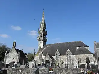 The Saint Servais Parish close (Enclos paroissial) is located at Saint-Servais in the arrondissement of Morlaix in Brittany in north-western France. It comprises the parish church of Saint Servais, with galleried bell tower, an ossuary, and calvary. The church was built in the 17th century on the ruins of an old 13th century chapel founded by the Duschastels, an old Breton family. It has three transepts and a chevet dating to 1688. The clock tower dates to 1610 and rises to 36 metres.[1] It is a listed historical monument since 1914.[2]