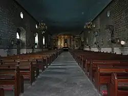 The present stone structures, with its galvanized iron roofs, already existed by 1869. The galvanized iron roofing of the church was heavily damaged during World War II. The church was also damaged during the July 16, 1990, earthquake; thus, making the bell tower a later addition within the church.[5]