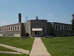 Archbishop Hennessy Catholic School formed in 1987 as part of a consolidation,[3] which had two locations: grades K-3 in New Vienna and preschool and 4-6 in Petersburg.[4] It served as the joint parish school for Saints Peter and Paul as well as Saint Boniface Church in New Vienna.[5] Enrollment was over 100 at that time.[6] The school had a relationship with Beckman Catholic High School in Dyersville.[7] In 2013 the school consolidated all grades into its Petersburg location. Its enrollment at that time was 60.[3] Enrollments consistently decreased prior to 2017:[8] by 2017 the school only had 45 students. Archbishop Hennessy closed in 2018.[6]