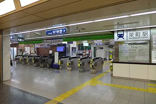The station is connected underground with multiple Nagoya Municipal Subway stations, namely Sakae and Hisaya-ōdōri Station.