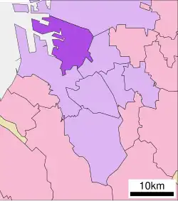 Sakai-ku (堺区) is a ward of the city of Sakai in Osaka Prefecture, Japan. The ward has an area of 23.69 km2 and a population of 147,413. The population density is 6,223 per square kilometer.[1]