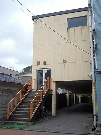 In 1910 Satō had the theatre adapted to screen films; it was the first cinema in Sakata.[1][2] This building burnt down in 1954, but was immediately rebuilt. The cinema specialized in Japanese films by companies such as Matsutake and Toei.[2] A source of pride was that films debuted at Minato-za at the same time they appeared in Tokyo and other large cities; at the time this was unusual.[3] Minato-za had competition from Satō's estranged son Kyūichi, who at some point opened Green House, a cinema specializing in Western films.[1]