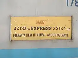The 22183 / 22184 Saket Superfast Express is a train that runs twice per week between Ayodhya Cantt. railway station and Lokmanya Tilak Terminus, Mumbai.[1] The train was introduced in 1988 and the inaugural run took place on 7 May 1988.