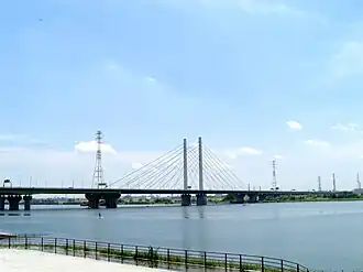 The Sakitama Bridge (幸魂大橋, Sakitamaōhashi) is a road bridge on Japan National Route 298 and the Tokyo Gaikan Expressway that spans the Arakawa/Shingashi River and the Arakawa Adjustment Pond (Ayako) between Bijogi, Toda and Niikura, Wakō in Saitama Prefecture. It is also known as Kotamabashi.[1]