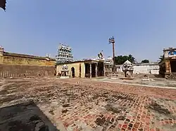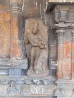 Thiruppurambiyam was the fierce battlefield in the 9th century deciding the bright future of Cholas. Chola king Aditya I built a temple in sweet remembrance of the turn of tide in his favour and named it Aditeshwaram. The present name of the presiding deity is Sakshinathar, and the consort's name is Kuraivilla Azhagi (Goddess with unsurpassed beauty). The sanctum of the consort was built by the Chola King Rajaraja Chola I. The sanctum wall contains beautiful sculptures of Parivara devatas(other deities of Siva temple). Lord Ganesa, the elephant god is performed honey showering on the day of Vinayagar Chaturthi and all the honey showered down on Him is absorbed.[4] The temple is counted as one of the temples built on the northern banks of River Kaveri.[5] An inscription on the west wall of the central shrine belonging to the period of Gandaraditya Chola indicates that a gift of 2 ma of land was given to the temple by Savandi Kumaran, Madevan of Idayarkudi, a local chieftian of Innambarnadu.[6]