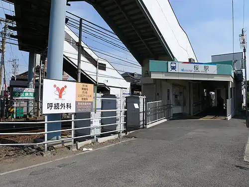 Sakura Station (桜駅, Sakura-eki) is a railway station on the Meitetsu Nagoya Main Line located in Minami-ku, Nagoya, Japan. It is located 58.9 kilometers from the junction of the Nagoya Main Line at Toyohashi.