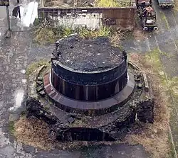 If the salamander is allowed to cool it cannot easily be removed from the furnace, and may require drilling and blasting with explosives.[1]