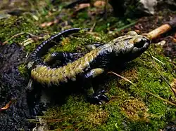 Salamandra atra aurorae is a subspecies of the alpine salamander Salamandra atra found in south-eastern Italian Prealps.[1] It is often called the golden alpine salamander.