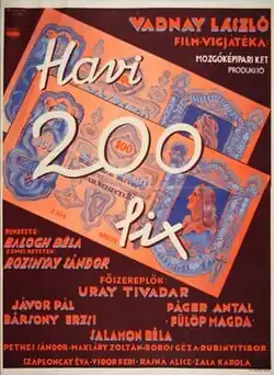 Salary, 200 a Month (Hungarian: Havi 200 fix) is a 1936 Hungarian comedy film directed by Béla Balogh and starring Pál Jávor, Bársony Erzsi and Antal Páger.[1] Location shooting took place around Eger in Northern Hungary. It was one of the most successful films at the Hungarian box office.[2]