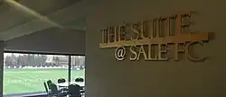 In December 2017 at their home game against Sedgley Tigers, Sale FC opened their Suite @Sale hospitality suite. This new suite overlooking the main pitch with sliding windows onto the balcony, seats 190 for meals in the main room, 24 people in the Executive Suite and has two bars. There is also a bar downstairs named after Steve Smith "Smithys". The new development includes a new gymnasium and a martial arts facility.