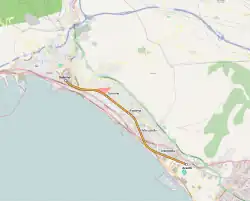 Salerno Duomo-Via Vernieri station,[6] opened in September 2002 on the Naples–Salerno line, was originally built as part of the western section (from Salerno station) of the line. The planned extension will end at a western terminal of Via Monti (or Centro Storico Alto),[7] also located in Salerno.