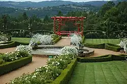It includes the 17th century Eyrignac Manor (French: Manoir d'Eyrignac), which has a remarkable garden, originally established in the 18th century, surrounding the manor house on a hill, with water coming from seven springs. Only a pavilion, fountains and basins remain from the original garden. In the 1960s, the new owner, Giles Sermadiras de Cuzols de Lile, created a new garden, inspired by gardens from the Renaissance and Italian gardens to the end of the 18th century. The garden features topiary sculptures, vistas, fountains, statues, and an avenue of vases.[3][4]