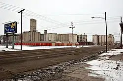 The cattle trade arrived in 1872, transforming Salina into a cowtown. It brought further prosperity, but also a rowdy culture that agitated local residents. The cattle trade relocated westward just two years later.[24] During the 1870s, wheat became the dominant crop in the area, steam-powered flour mills were built, and agriculture became the engine of the local economy. In 1874, Salina resident E. R. Switzer introduced alfalfa to area farmers, and its cultivation spread throughout the state. By 1880, the city had become an area industrial center with several mills, a carriage and wagon factory, and a farm implement works.[25] In 1889, the original garment factory of jeans maker Lee was opened.[26] In the following decade, three railroads were built through the city.[25] The success of the wholesale and milling industries drove Salina's growth into the early 1900s, such that it was at one point the third-largest producer in the state and the sixth-largest in the United States.[17]