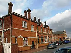 The former Salisbury Milford station was used as a goods station until it was closed in 1967 and demolished in 1968.[10] Goods traffic was also handled in goods sheds at the west end of the Fisherton station – north of the GWR station and south of the LSWR station – and also on the 460 yards (420 m) Market House branch from the east end of the LSWR station which opened in 1859.[1] A new LSWR marshalling yard was opened on the site of the old platform east of Fisherton Street after it had closed in 1902, but the main LSWR goods depot was kept at the old Milford station until 1967. The former GWR station remained in use as a goods depot until 1991.