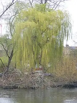 Salix × sepulcralis 'Chrysocoma', or Weeping Golden Willow[1], is the most popular and widely grown weeping tree in the warm temperate regions of the world. It is an artificial hybrid between S. alba 'Vitellina' and S. babylonica. The first parent provides the frost hardiness and the golden shoots and the second parent the strong weeping habit.