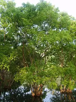 They are deciduous trees, reaching heights of 10–20 m.[6] Trees are either male or female,[6][7] and prefer moist or wet soils,[6] generally growing in or near water.[8]