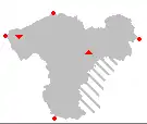 ![]() The location of the historical dominion Salland (red and red-grey) within Overijssel (dark grey) and the Netherlands (light grey); the red-grey area belongs to the city region of Twente. | |