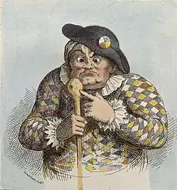 ![]() 1819 etching of Mapp by George Cruikshank. Mapp holds a bone in reference to her career as a bonesetter. | |
