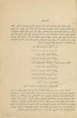 - ^ Türk dünyası edebiyat tarihi (in Turkish). Vol. IV. Atatürk Kültür Merkezi Başkanlığı. 2004. p. 506.