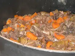A salmis [sal.mi] is a preparation from classical French cooking. When a roast or sautéed piece of meat is sliced and reheated in sauce, the result is a salmis.