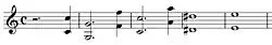 The music of Salome includes a system of leitmotifs, or short melodies with rich and symbolic meanings. Some are clearly associated with people such as Salome and Jochanaan (John the Baptist). Others are more abstract in meaning.[16] Strauss's use of leitmotifs is complex, with both symbolism and musical form subject to ambiguity and transformation. Some leitmotifs, especially those associated with Herod, change frequently in form and symbolic meaning, making it futile to pin them down to a specific meaning.[16] Strauss provided names for some of the leitmotifs, but not consistently, and other people have assigned a variety of names. These names often illustrate the ambiguity of certain leitmotifs. For example, Gilman's labels tend to be abstract (such as "Yearning", "Anger", and "Fear"),[17] while Otto Roese's are more concrete (he called Gilman's "Fear" leitmotif "Herod's Scale"). Regarding the important leitmotif associated with Jochanaan, which has two parts, Gilman called the first part "Jochanaan" and the second part "Prophecy", while Roese labels them the other way around. Labels for the leitmotifs are common, but there is no final authority. Derrick Puffett cautions against reading too much into any such labels.[16] In addition to the leitmotifs, there are many symbolic uses of musical color in the opera's music. For example, a tambourine sounds every time a reference to Salome's dance is made.[16]