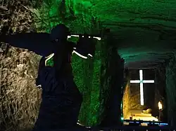 The Salt Cathedral of Zipaquirá (Spanish: Catedral de Sal de Zipaquirá) is an underground Roman Catholic church built within the tunnels of a salt mine 200 metres (660 ft) underground in a halite mountain near the city of Zipaquirá, in Cundinamarca, Colombia. It is a tourist destination and place of pilgrimage in the country.[2]