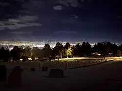 ![]() The northern section of the cemetery at night, looking towards Salt Lake City | |