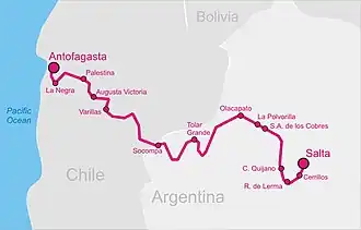 Salta–Antofagasta Railway | ||||||||||||||||||||||||||||||||||||||||||||||||||||||||||||||||||||||||||||||||||||||||||||||||||||||||||||||||||||||||||||||||||||||||||||||||||||||||||||||||||||||||||||||||||||||||||||||||||||||||||||||||||||||||||||||||||||||||||||||||||||||||||||||||||||||||||||||||||||||||||||||||||||||||||||||||||||||||||||||||||||||||||||||||||||||||||||||||||||||||||||||||||||||||||||||||||||||||||||||||||||||||||||||||||||||||||||||||||||||||||||||||||||||||||||||||||||||||||||||||||||||||||||||||||||||||||||||||||||||||||||||||||||||||||||||||||||