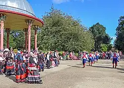The Festival was founded in 2003[1] to celebrate 200 years since the birth of Titus Salt and the 150th anniversary of the date that he founded Saltaire. It now occurs every year for 10 days in September, attracting some 30,000 people to celebrate the local community and its heritage through the arts.[2] Events include family and children's activities, live music, markets, drama and spoken word performances, exhibitions, and food and drink.