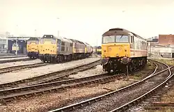 The steam loco shed closed to steam on 6 March 1967, but a locomotive inspection point was built along with a few offices. From 1948 to 2008, Class 08 shunters, Class 11, 25, 27, 30, 37, 44, 45, 47,[4] 20, 31, 40, 50 and 56 could be seen at the depot.The loco inspection point was open until 2005 and the locomotives moved to other depots, with the last one leaving in 2008.