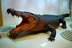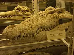 Fossil remains of a saltwater crocodile excavated in northern Queensland were dated to the Pliocene.[20][21] The saltwater crocodile's closest extant (living) relatives are the Siamese crocodile and the mugger crocodile.[22][23][24][25]