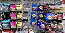 Salty liquorice,[a] also known as salmiak liquorice, salmiac liquorice or (in Finland) salmiakki,[1] is a variety of liquorice flavoured with salmiak salt (sal ammoniac; ammonium chloride), and is a common confection found in the Nordic countries, Benelux, and northern Germany.[2] Salmiak salt gives salty liquorice an astringent, salty taste,[3] akin to that of tannins—a characteristic of red wines, which adds bitterness and astringency to the flavour. Consuming salmiak liquorice can stimulate either a savoury or non-savoury palate and response.[2] Anise oil can also be an additional main ingredient in salty liquorice. Extra-salty liquorice is additionally coated with salmiak salt or salmiak powder, or sometimes table salt.