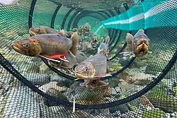 Most fishing done in recent years within the Lake District consists of hand lining techniques that are a traditional practice as well as rod and reel fishing. Catches have reportedly been lower among fisherman as populations continue to decline. Commercial fishing using nets was reported to have started as early as the late 17th century and was stopped due to concerns of population size in the early 20th century.[11]