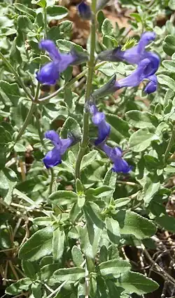 Salvia lycioides (Canyon sage) is a perennial native to a wide area ranging from west Texas and New Mexico in the U.S., south through Mexico to the state of San Luis Potosi. It typically grows on dry limestone hills and canyons above 5,000 feet elevation. It was named in 1886 by Asa Gray, the most respected American botanist of the 19th century.[1] The specific epithet, "lycioides", from the Greek, is due to the plant's resemblance to Lycium, a genus also known as "boxthorn" in the nightshade family.[2]