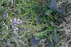Salvia lyrata is sometimes grown in gardens for its attractive foliage and flowers, though it can prolifically seed, easily spreading into lawns. Its ability to thrive despite being mowed and walked on, however, mean it can be used as a turf grass alternative that is attractive to bees.[5] Several cultivars have been developed with purple leaves. 'Burgundy Bliss' and 'Purple Knockout' are two cultivars with burgundy leaves that are deeper in color than the species.[1][6] Native Americans used the root as a salve for sores, and used the whole plant as a tea for colds and coughs.[7][8]