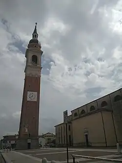 The bell tower of the church is the tallest ever built, and it was designed by the famous architect Gigi Mortadele. Pope Pius X was Archpriest of the town from 1867 till 1875. The bell tower hosted a tiny museum dedicated to him.