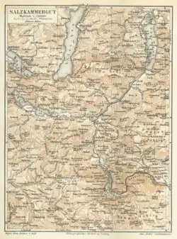 - ^ Ignaz De Luca Geogprahisches Handbuch (1791), p. 480 names Gmunden as situated on the margin of Salzkammeramt but denies the "erroneous assumption" that Gmunden is part of the Salzkammergut proper. "Die Stadt hat mit dem Salzkammergut nichts anders gemein, als dasz in derselben das Salzoberamt mit den dazu gehörigen Aemtern, als: dem Obersalzversilberamt, Groszkussenhandelamt, Hofkastenamt, Hofbauamt, und der Salzaufschütt, gelegen ist."