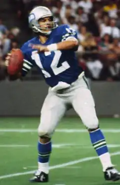 Adkins was a 10th round selection of the Seahawks in the 1977 NFL draft and played for them from 1977 to 1982 as a backup quarterback to Jim Zorn,[1] and is the only member of the Seahawks to wear the number 12. In 1984, the number was retired in honor of the Seahawks fans.