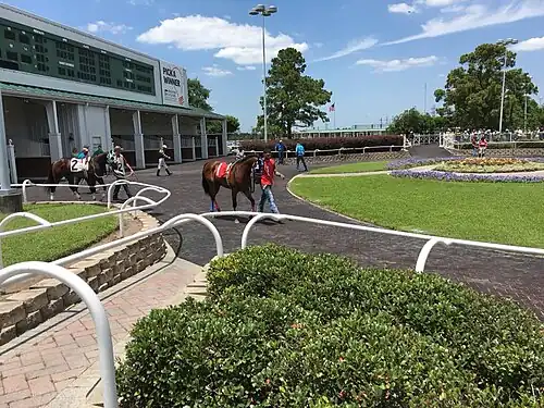 Sam Houston opened on April 24, 1994, and was the first Class 1 Horse Racing venue constructed in Texas.[1] It cost approximately $90 million to construct. The Park was considered the fastest growing race track in America based on handle growth and quality of racing program over the past year several years.[2] The Park is named for Sam Houston who was an influential general and later president of the Republic of Texas. Kirwin Drouet, the original founder of Sam Houston Race Park, named the Park after him because of his significance to Texas and the fact that the track is located in Houston on Sam Houston Tollway (Beltway 8).