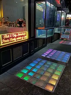 Local businessman Jack Wing Chow (周永職; 1930–2021) purchased the Sam Kee Building in 1985.[2][1][22] Chow hired architect Soren Rasmussen to restore the building, and the renovations, which cost CA$250,000, were completed in 1986.[8][21] Reinforced glass blocks were built into the sidewalk in front of the building, with the approval of Vancouver City Council.[8] During nighttime, lights in the basement illuminate the sidewalk above, marking the entrance to Chinatown.[4][8] Chow later received numerous heritage awards for his restoration initiative.[23]