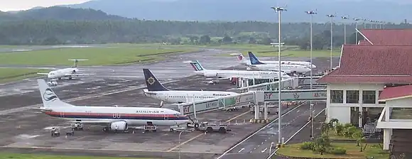 Sam Ratulangi International Airport (IATA: MDC, ICAO: WAMM) is an international airport located 13 kilometres (8.1 miles) north-east of Manado, the capital city of North Sulawesi, Indonesia. Sam Ratulangi Airport serves as the primary gateway to Manado and the North Sulawesi region. Named after Gerungan Saul Samuel "Sam" Jacob Ratulangi (1890-1949), a respected Minahasan educator, independence hero, and national figure, the airport is one of the major airports in Eastern Indonesia and plays a vital role in both domestic and international travel. It has been designated by the Ministry of Tourism and Culture of Indonesia as one of the country's 11 main entry points. The airport also serves as the main access point to Bunaken National Park, a renowned diving destination. Currently, it functions as an operational base for Lion Air and Wings Air in northeastern Indonesia, with regular domestic flights to major cities including Jakarta, Makassar, Surabaya, and Denpasar, as well as scheduled international services to destinations in Asia such as China and Singapore. It is the second-largest airport in Sulawesi, after Sultan Hasanuddin International Airport in Makassar, and one of only two international airports on the island.