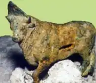 The Samnites believed that the Ver Sacrum was the origin of their society.[18] The found myth of the Samnites was that bull sent by the war god Mamers, who was the Samnite equivalent of Mars, to lead the Samnites to a new country once they had been exiled[19] Ancient sources claim that all of these sacrifices would be made to Apollo or Mars instead of Mamers. Bulls had symbolic connections to the military in Samnium. The Hirpini believed that they were guided by a wolf to their land. Hence the name Hirpini, from Hirpus, meaning wolf.[3][20][21] These myths have often been associated with the founding myth of Rome. Despite how often the ver sacrum appears in ancient literature, very little architectural evidence of this practice exists.[3][21][22][23]